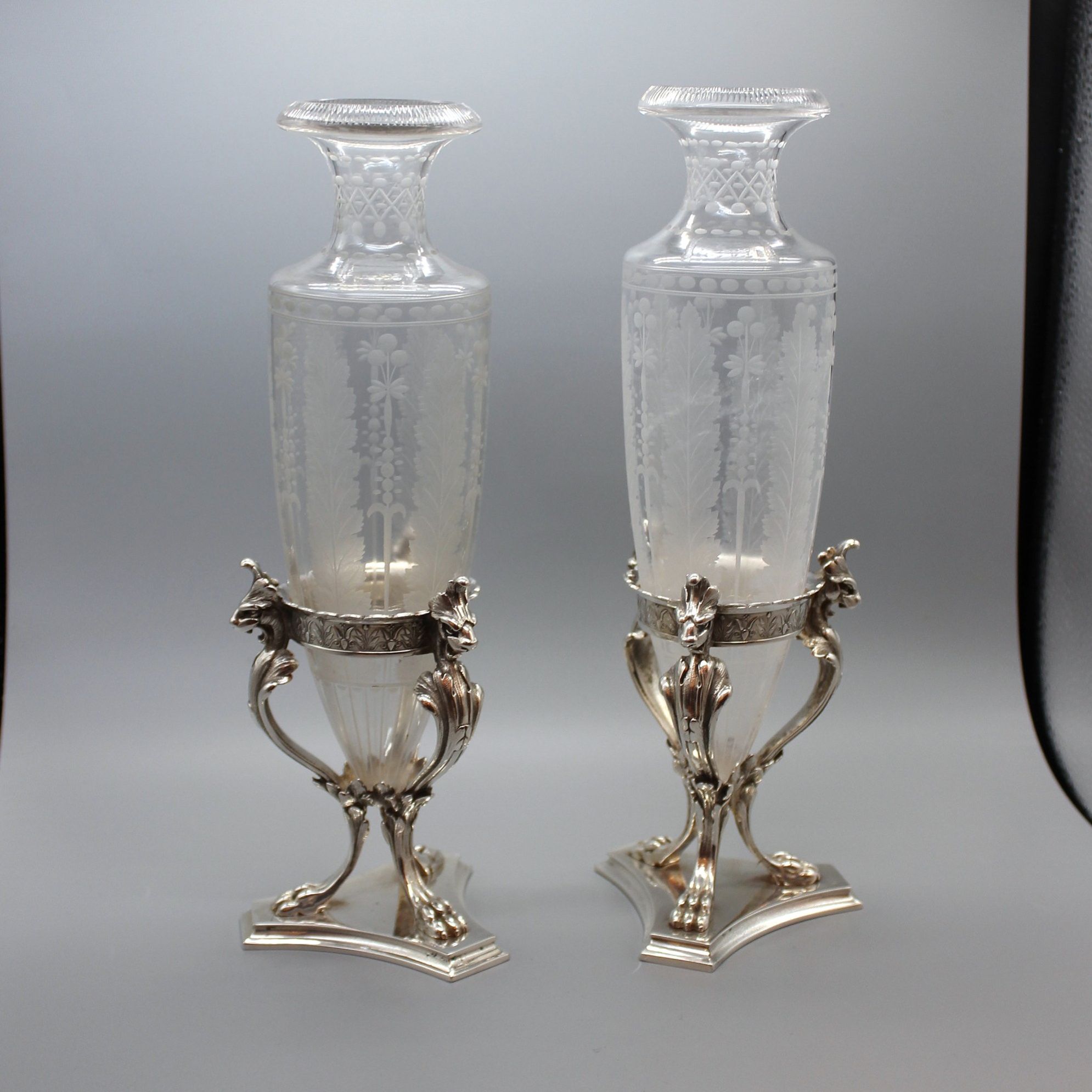 備考 | アカンサスの葉のエッチングにグリフィンの飾り 威風堂々たるデザインはナポレオン帝政以降ヨーロッパで人気を博したアンピール様式を踏襲したものと思われます 銀仕上げの台座は1836年創業のエルキントン社製で、丁寧かつしっかりした作りです |